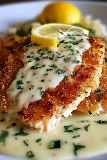 Lemon Pecorino Crusted Chicken with Creamy Lemon Sauce