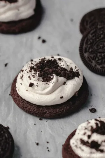 Crumbl chocolate Oreo cookies with buttercream frosting Copycat Recipe